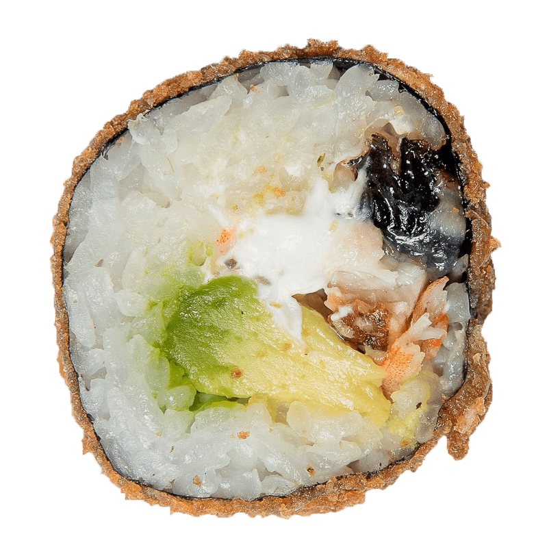 Roll con anguila, camarón, queso crema y aguacate, 10 bocados.