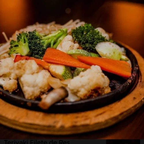 Teppanyaki con brócoli, zanahoria, germen de trigo y salsa a elegir.