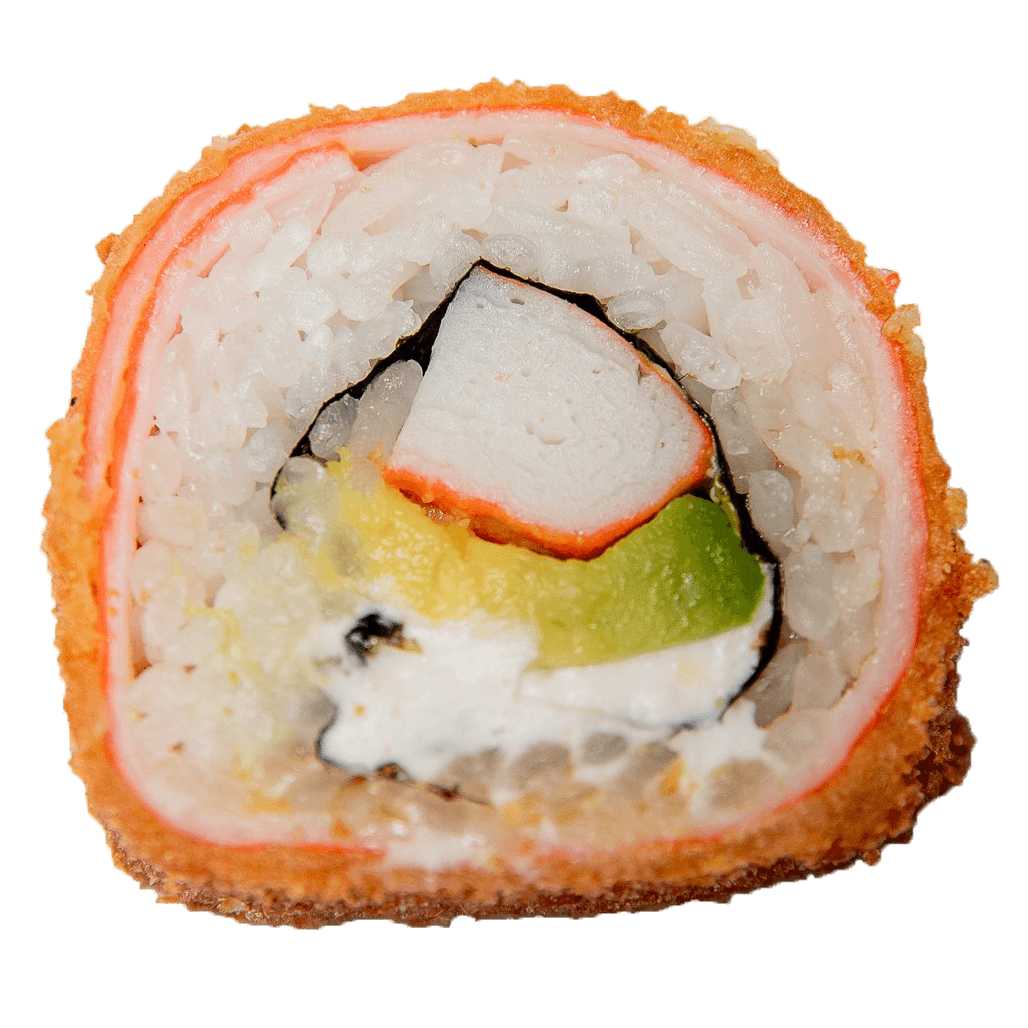 Roll con queso crema, surimi, aguacate, pasta tampico y surimi por fuera, 10 bocados.