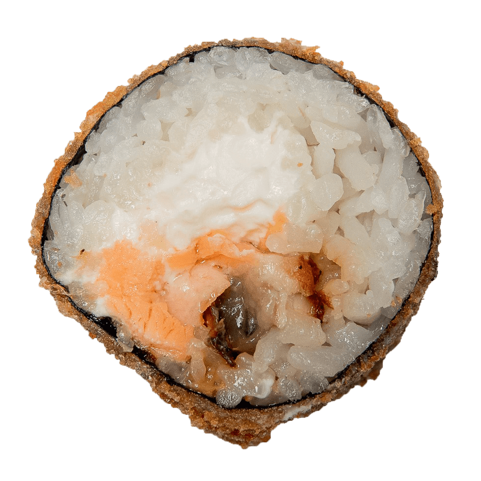 Roll con salmón, queso crema, anguila y pasta tampico, 10 bocados.