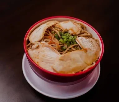 Sopa de fideos con brócoli, zanahoria, calabacín y pollo.